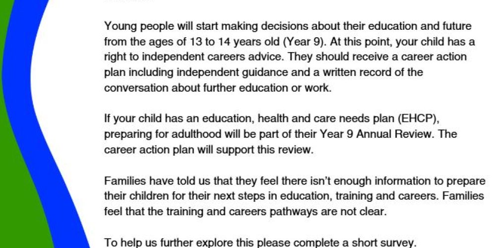 Preparing for adulthood (education, training and careers) – share your feedback The Leeds Parent Carer Forum and Voice, Influence and Change Team (LCC) work in partnership to raise the issues and challenges faced by parents and carers of children with SEND in Leeds across education, health and care. Young people will start making decisions about […]