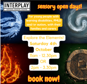 We are really looking forward to our Sensory Open Day on Saturday 4th October, themed on the elements! Please let us know if you’d like to book a slot at 11am – 12.30pm or 2pm – 3.30pm. Robbie, Sedia and Sarah will be here to welcome you and set up a fun sensory space for everyone.